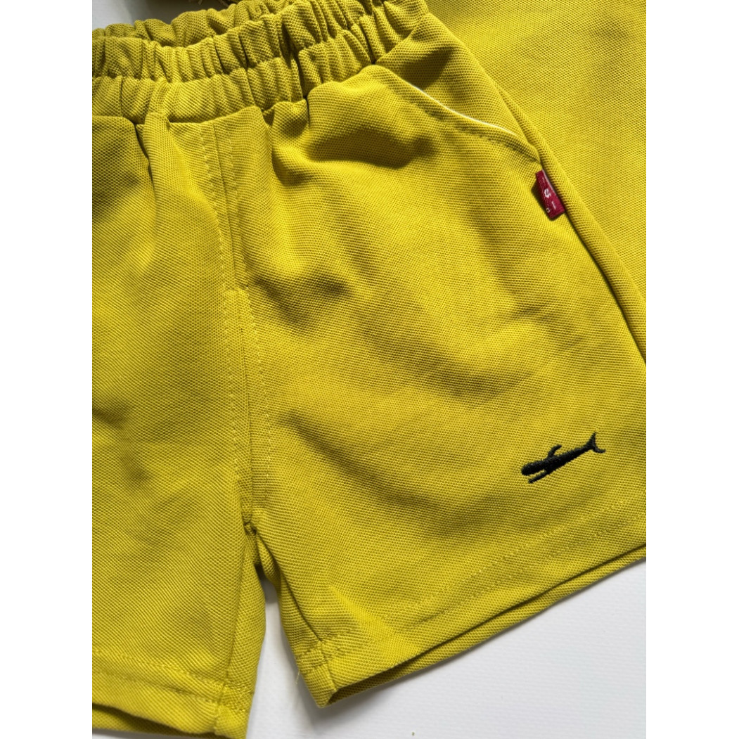 Цей літній костюм для хлопчика з поло і шортами створено для активних пригод і гарного настрою. Верх – стильне поло з коміром та кишенею, прикрашене акуратною вишивкою у вигляді акули. Низ – вільні шорти з комфортною посадкою на талії, які не заважають грати, бігати чи просто гуляти на свіжому повітрі.