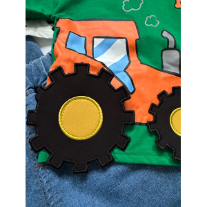 Цей костюм — не просто одяг, а частинка дитинства. Яскравий зелений колір футболки освіжить будь-який день, а трактор символізує гру, активність та пригоди. Шорти виготовлені з легкого джинсового матеріалу, який не сковує рухів і чудово тримає форму. Ідеально пасує для садочка, пісочниці, подорожей або домашнього використання.