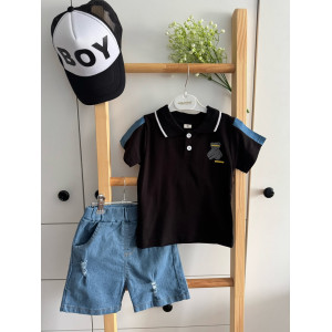 Опис Костюм на літо хлопчику футболка-поло чорного кольору і шорти 10818