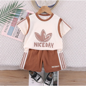 Зручний вільний крій не обмежує рухів дитини, а практичні шорти з кишеньками дозволяють брати із собою маленькі "скарби". Декоративний напис "NICE DAY" на футболці та шортах додає костюму настрою і стильного вигляду.