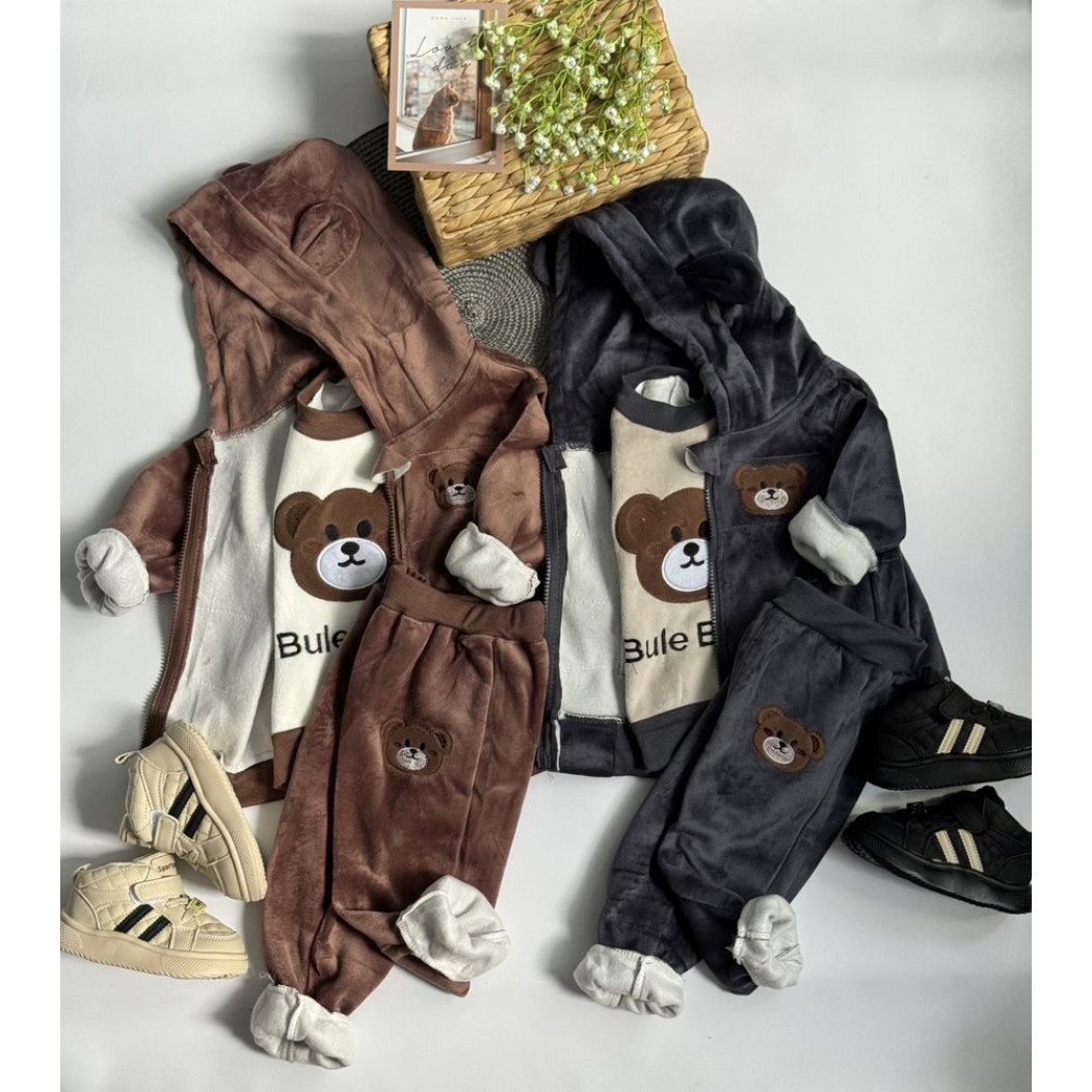 Дитячий утеплений костюм із плюшу (кофта + жилетка + штанці)