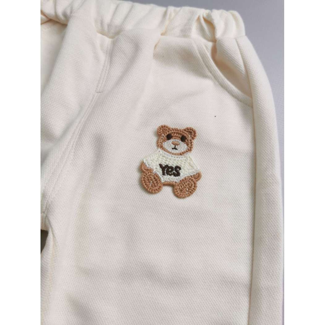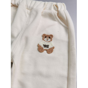 Знизу – кремові штанці з м’якими резинками та додатковим декором у вигляді ведмедика з написом "Yes".