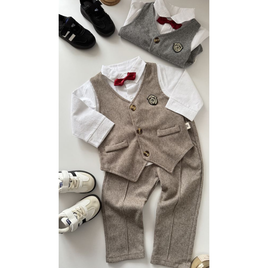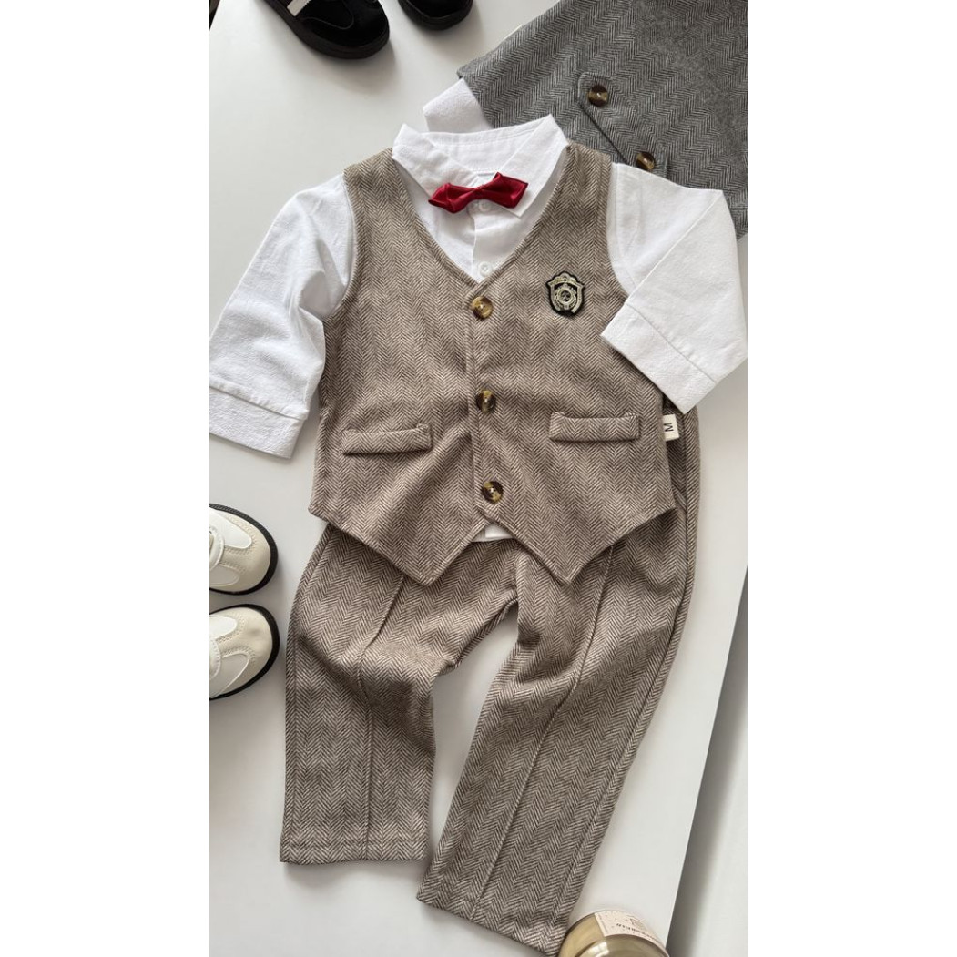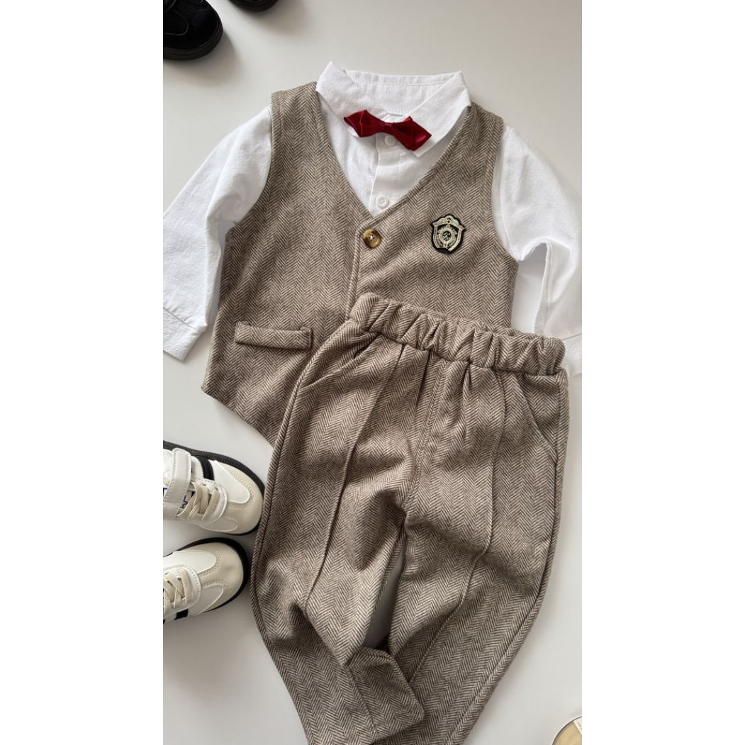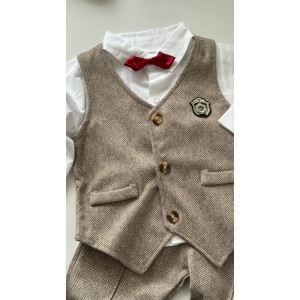 Елегантний та дуже милий костюм для маленького джентльмена. Ідеально підійде для святкових подій, фотосесій, днів народження, хрестин чи сімейних урочистостей.