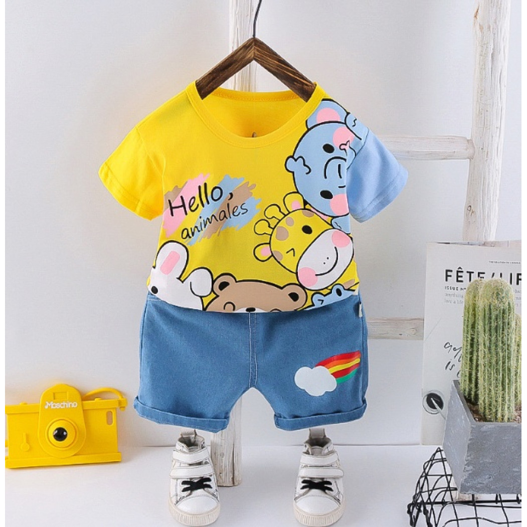 Опис Костюм на літо хлопчику Hello, animales жовтий 10486