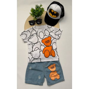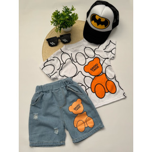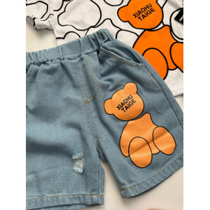 Літній костюм для хлопчика "Веселий ведмедик" — футболка + джинсові шорти