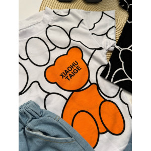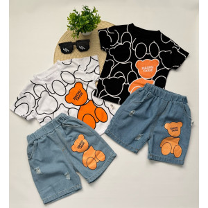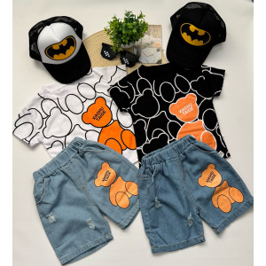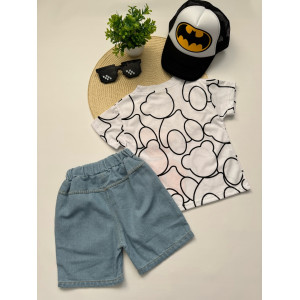 Подаруйте малюку стиль і комфорт цього літа з комплектом "Веселий ведмедик"! Цей яскравий костюм складається з білої футболки з милим ведмедиком у графічному стилі та модних джинсових шортів з тематичним принтом. Одяг ідеально підходить для активного дозвілля, прогулянок, дитсадка чи фотосесій.