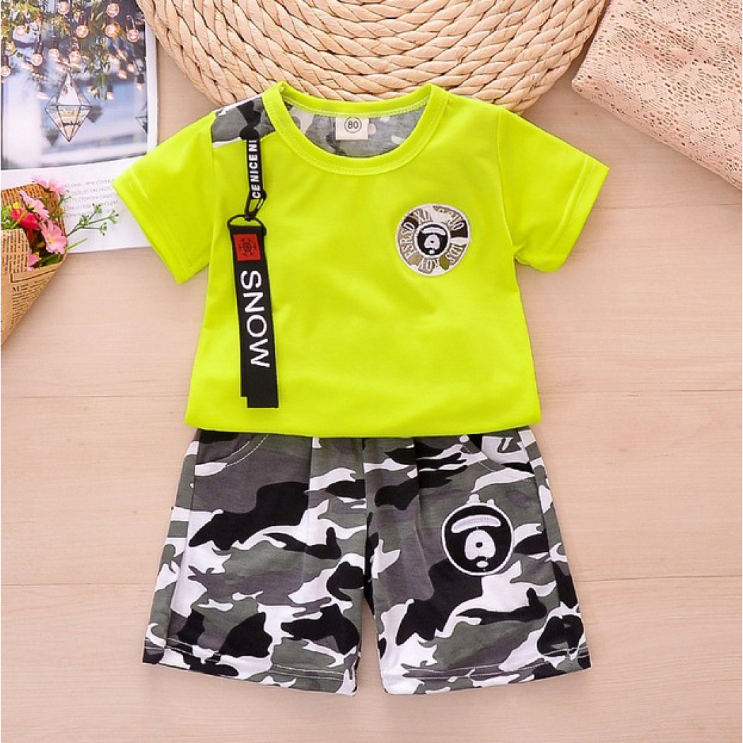Опис Літній костюм для хлопчика камуфляж салатовий верх 1182